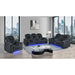 Duran - 3 Piece Power Reclining Sofa Loveseat And Recliner, LED, USB And Bluetooth Speaker - Gray
