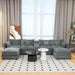 U Shaped Sectional Cloud Couch For Living Room, Fluffy Modular Sofa With Movable Ottoman 6 Seat Sectional Sofa Set With Console, Cup Holders - Gray