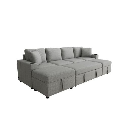 Modern Modular U-Shaped Sofa Bed With Movable Ottoman, USB Ports, Phone Holder