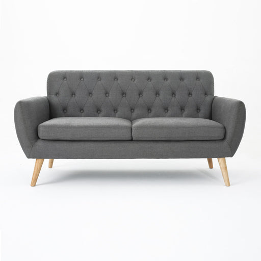 Contemporary Loveseat With Upholstered Fabric And Birch Wood Legs - Light Gray
