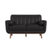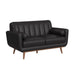 The Horizon Loveseat with Wood Front and 2 Six Inch Bolster Pillows exudes the coveted charm of mid-century modern style. Built with a frame fully upholstered in quality faux leather, this piece is built for durability. Comfortable foam cushioning, decorative tufting on the backrest, and track arms forming sleek and modern lines culminate to mark thoughtful design, while an exposed front rail and wood legs highlight excellent craftsmanship. For a refined and sleek addition to your living space, the Horizon Loveseat with Wood Front delivers in quality and style.