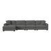 Introducing the Arizona Sectional Set, a modular design that brings both style and comfort to any home. These stunning living room pieces can be arranged to your liking and feature plush seat and back cushions to provide a luxurious seating experience for your family and guests. The extended chaise seat adds versatility and can be used to kick your feet up for ultimate relaxation. Vertical tufting throughout make this group one of a kind and adds personality to the room. Upgrade your living room with the Arizona Sectional Set and enjoy both comfort and style in one package.