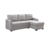Mabel - Linen Fabric Sleeper Sectional With Cupholder, USB Charging Port And Pocket