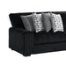 Outfit your home with the refined style of the Nightfall 2-Piece Sectional in Grand Cord Black. Built for lasting comfort, this piece features durable, 100% polyester upholstery and supportive foam cushioning. The sleek, black finish complements a variety of décor styles, while the included accent pillows enhance visual appeal. Sleek track arms form a timeless profile, and the sturdy block feet create a reliably stable foundation. For a stylishly practical addition to your living space, the Nightfall 2-Piece Sectional delivers.