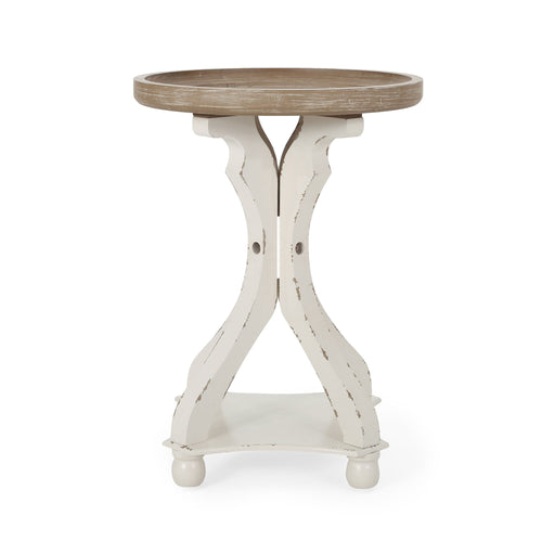 French Country Style Accent Table With Ornate Stretcher Base - Natural