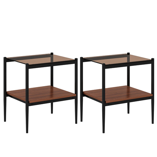 Modern Rectangle End Table (Set of 2) With Tempered Glass Tabletop And Layer - Brown