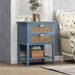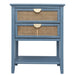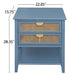 2 Drawer Side Table, Natural Rattan, American Furniture, End Table Suitable For Bedroom, Living Room, Or Study - Blue