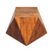- Chestnut Abstract End Table - This one sided geometric side table has a refined shape and fits into any type of interior either country homes or compact city apartments. The base is constructed from 100% solid mango in a chestnut finish and is made to fit many types of woods and designs of furniture.