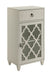 - Versatile Design: The Ceara White Finish Accent Table features a compact design with one drawer and a glass door, making it a stylish and functional addition to any space.