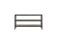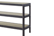 - Design Features: The table incorporates metal insets on all three shelves, adding an industrial touch to its softer modern design elements.