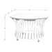 You have found the accent piece your living space has been missing. This coffee table instantly adds a dash of luxury to your home with its modern glam design. The table comes with removable casters, allowing it to move around with ease to rearrange your space if needed. The glass table top pairs perfectly with the chrome finish, while intricate work on the base adds eye-catching elements.