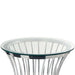 The Emma Round End Table is the accent piece your living space has been missing! This end table features a modern glam design, instantly adding a dash of luxury to your home. The glass table top pairs perfectly with the chrome finish, making this end table easily transitional with any space. The intricate work on the table base adds an element of drama and flair. This living room staple is perfect for small space living thanks to its tall and narrow design. Add this end table to your living space today for an ultra glam look!