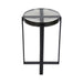 This contemporary end table features a sturdy mild steel frame paired with a round casted glass top, offering both durability and style. The clean lines and modern black finish make it perfect as a side table or accent piece in living rooms, bedrooms, or offices. Ideal for modern and industrial home decor, this versatile table adds a sleek, functional touch to any interior space.