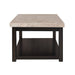 The Kansas Coffee Table with Marble Top is the perfect addition to your home! This coffee table features a marble table top, making it the perfect piece for your living room. The base features a bottom shelf, allowing you to store away your favorite décor or coffee table books. The base of the table is finished in a rich, espresso; making it the perfect transitional color for your home. The straight legs keep this contemporary design a staple in your home year after year.
