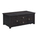 The Kendyl Coffee Table with Lift Top is the perfect addition to your home! This coffee table features a Lift top, making it the perfect piece for your living room. Features two spacious drawers, two cabinets, and hidden storage, allowing you to store away your favorite décor or coffee table books. The base of the table is finished in a rich, espresso; making it the perfect transitional color for your home.