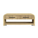 Transform your living area with the Ridgemont Coffee Table, a stunning combination of style and functionality. Its finish showcases natural grain detailing, radiating warmth and modern elegance. With sleek, rounded edges and vertical reeding, this table adds depth and texture to your decor. Designed for convenience, it features spacious drawers adorned with striking bar pulls, perfect for storing essentials. Casters included allow for effortless mobility, enabling you to rearrange your space with ease. Embrace contemporary sophistication with the Ridgemont Table, where beauty meets everyday practicality.