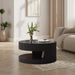 Round Coffee Table With Storage, Vertical Stripe Design - Black