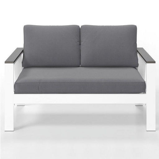 All Weather Patio Loveseat With Armrests & Angled Backrest - White / Gray