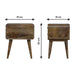 - Curved nightstand - Endlessly versatile, this curved nightstand table makes a perfect stand for nibbles, drinks, or a lamp. It will prove handy all over your home and is made from 100% solid mango wood and has a fine finish. It has curved edges which will fit into any home/living space. It also comes with 2 drawers that come with shiny knobs and 4 Nordic style legs.