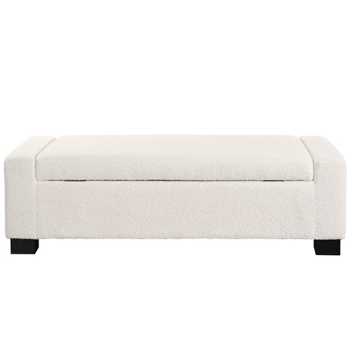 Textured Boucle Ottoman Bench With Hinged Lid For Seating And Storage - Beige