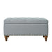 Elegant Ottoman Storage Bench With Recessed Support Hinge, Rivet Trim Linen - Gray