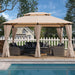 13 X 10 Outdoor Patio Gazebo Tent With Ventilated Double Roof And Sidewall (Detachable Curtains On All Sides), For Lawn, Garden, Backyard, And Deck - Beige