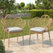 Kirk - Outdoor Wicker Peacock Shape Papasan Style Chair, Teak Finished Leg (Set of 2) - Beige / Light Brown / Light Teak