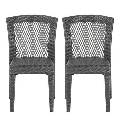 Outdoor Dining Chair (Set of 2) Wicker Rattan Woven Patio Chairs, Waterproof Seating - Gray