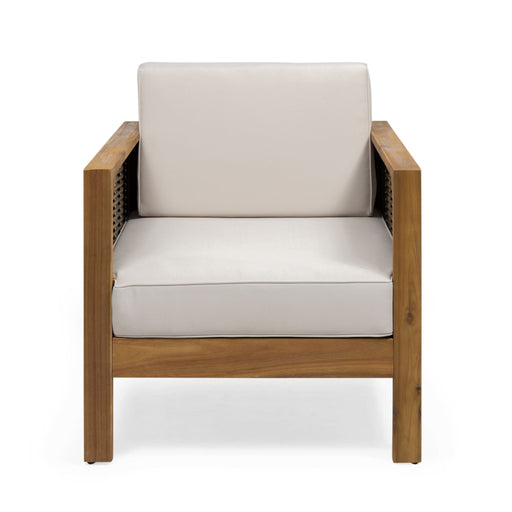 Outdoor Acacia Wood Club Chair With Wicker Accents