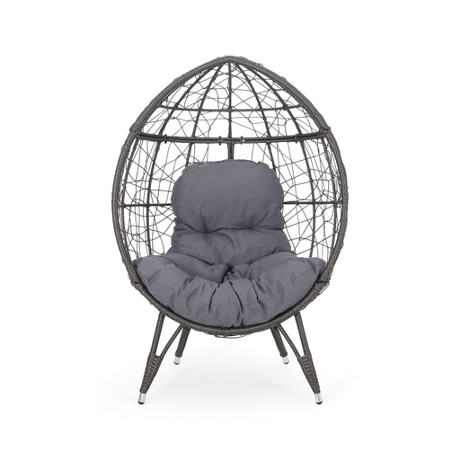 Basket Chair With Teardrop Shape And Water Resistant Cushion - Natural