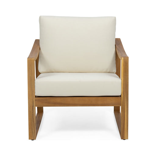 Outdoor Acacia Wood Club Chairs With Cushions (Set of 2) - Teak / Beige