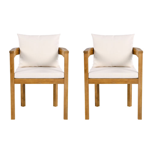 Outdoor Acacia Wood Dining Armchair With Cushion (Set of 2)