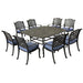 Square 8 Person 63.98" Long Dining Set With Navy Blue Cushions - Antique Navy Blue
