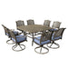 Square 8 Person 63.98" Long Dining Set With Navy Blue Cushions, Swivel And Rocking Chairs - Antique Navy Blue