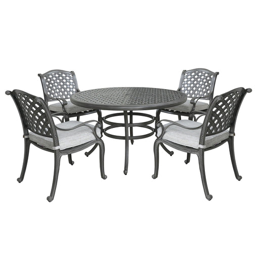 Stylish Outdoor 5 Piece Aluminum Dining Set With Cushion (4 Arm Chairs And Table) - Sandstorm
