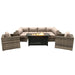 9 Piece Outdoor Sectional Set With Fire Pit Table And Cushions - Beige