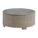 Ollie - 4 Piece Patio Conversation Set (Curved Loveseat, Two Console & Round Coffee Table) - Tan And Olefin White Cream