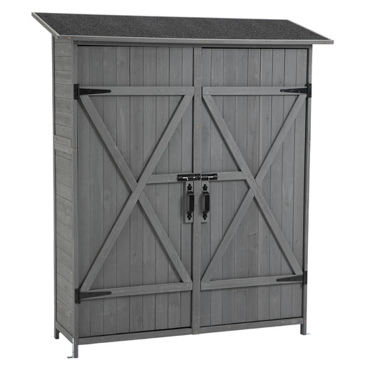 Wood Outdoor Storage Cabinet With Metal Top Garden Shed For Yard And Patio - Gray