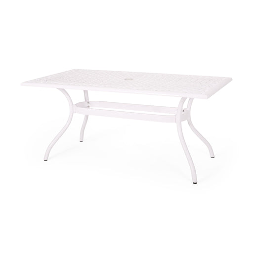 Celestine - Outdoor Cast Aluminum Dining Table With Floral Lattice Design And Umbrella Holder