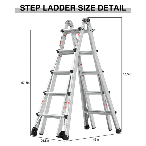 Multi-Position Foldable Aluminum Ladder, A-Frame And Straight Ladder, Ansi 250Lbs - Gray
