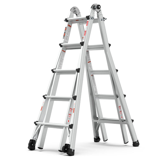 22' Aluminum Multi-Position Ladder With Wheels, 300 Lbs Weight Rating - Metallic Gray