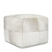 Perfect for any living area, this pouf offers versatile use without sacrificing style. A pieced design draws the eye to the texture and silvery sheen of genuine hide. The lightweight bead filling allows this pouf serve as an ottoman, table, or seat.