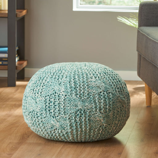 Deon - Knitted Pet Yarn Round Pouf With Classic Cable Knit Design - Aqua