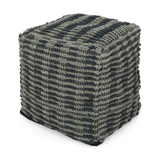 Macie - Square Woven Outdoor / Indoor Pouf - Gray / White