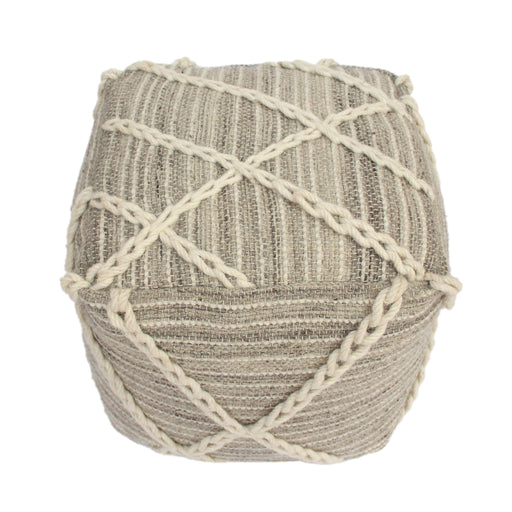 Karim - Faux Yarn Large Pouf, Durable - Ivory / Gray