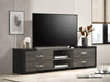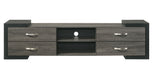 Discover the epitome of modern elegance with this stylish entertainment console, a perfect blend of contemporary design and functionality. Crafted with sleek, dark tones and complemented by bold black accents, this console exudes a sophisticated charm that effortlessly enhances any living space. The spacious surface accommodates your large flat-screen TV while the four roomy drawers provide ample storage for all your media essentials, ensuring a clutter-free environment. Central open shelves are perfect for displaying your favorite decor pieces or housing your gaming consoles and media players. Finished with brushed metal handles for a touch of industrial flair, this entertainment console is not just a piece of furniture—it's a statement of refined taste and practical luxury.