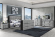 The Isabella Grey Bedroom Collection by Global Furniture is a luxurious, tech-savvy statement for the modern bedroom. Fully upholstered in a soft, elegant grey fabric, each piece showcases a refined fluted design'delicately styled on the drawer fronts and more prominently featured on the headboard and footboard for added dimension and texture. This collection seamlessly blends style and innovation. The dresser, chest, nightstand, and mirror are all equipped with integrated LED lighting, enhancing the ambiance with a subtle, modern glow. The queen bed is the true showstopper'featuring headboard LED lighting, a footboard with a built-in 50" TV lift, a crystal-insert fireplace, and Bluetooth speakers, all designed to bring comfort and entertainment to the forefront of your bedroom experience. Whether you're looking for bold design, tech-forward features, or elegant upholstery, the Isabella Collection delivers it all with sophistication and flair.