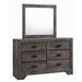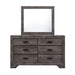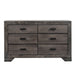 The Nathan 6-Drawer Dresser is what rustic farmhouse dreams are made of! This dresser comes with six, spacious drawers; perfect for keeping all of your belongings neatly stored away. Store away your more delicate items in the felt-lined top drawer to help keep your items looking new. The bottom drawers feature a dust proofing layer, also to help protect your items and keep them looking like new. The dark, metal hardware pairs beautifully with the weathered finish. Sleek lines and bracket feet complete the look of this rustic design, that will become a staple in your home for years to come.