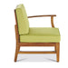 • Low Maintenance: Designed to withstand most weather conditions, this armchair requires minimal upkeep. To extend its lifespan, it's recommended to cover or store the cushions when not in use and apply teak oil as needed to maintain its appearance.