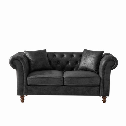 Chesterfield Velvet Upholstery Fabric Loveseat With Roll Armrest And Nailhead